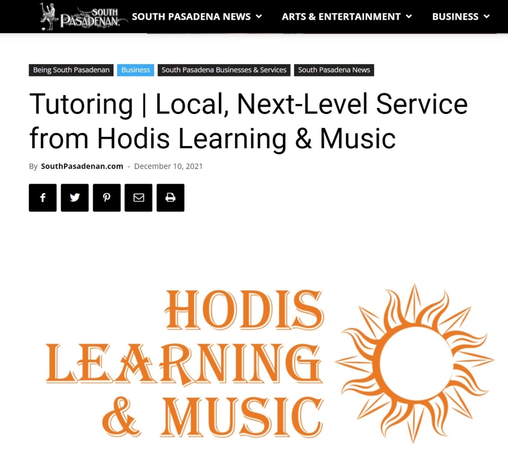 Check out this amazing feature on Hodis Learning & Music and our founder, Drew M. Hodis. We are incredibly grateful for the South Pasadenan’s review of our beginnings and tutoring, music, and art services!